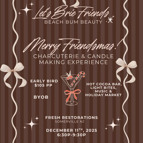 We’re back for the ultimate cozy girls’ night out, but with a holiday twist! Join Beach Bum Beauty and Let’s Brie Friends for an evening full of laughter, creativity, and festive vibes.
